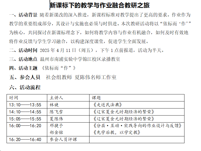 关于举行温州市夏陈伟“名师送教”工作室第15次活动的通知