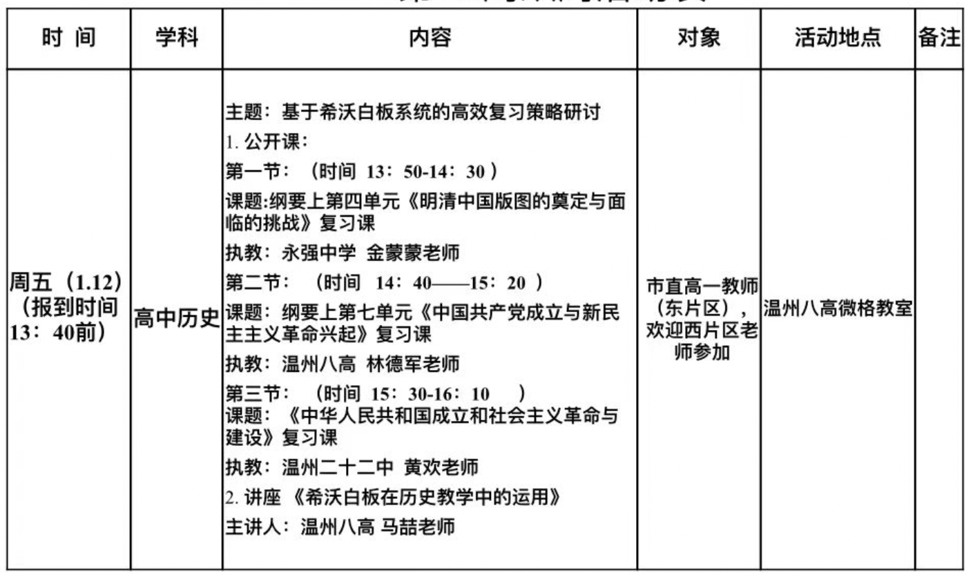 关于举行温州市高中历史方军“名师送教”工作室第八次活动的通知