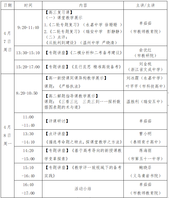 关于举行温州市高中政治单茹茹“名师送教”工作室第6次活动的通知
